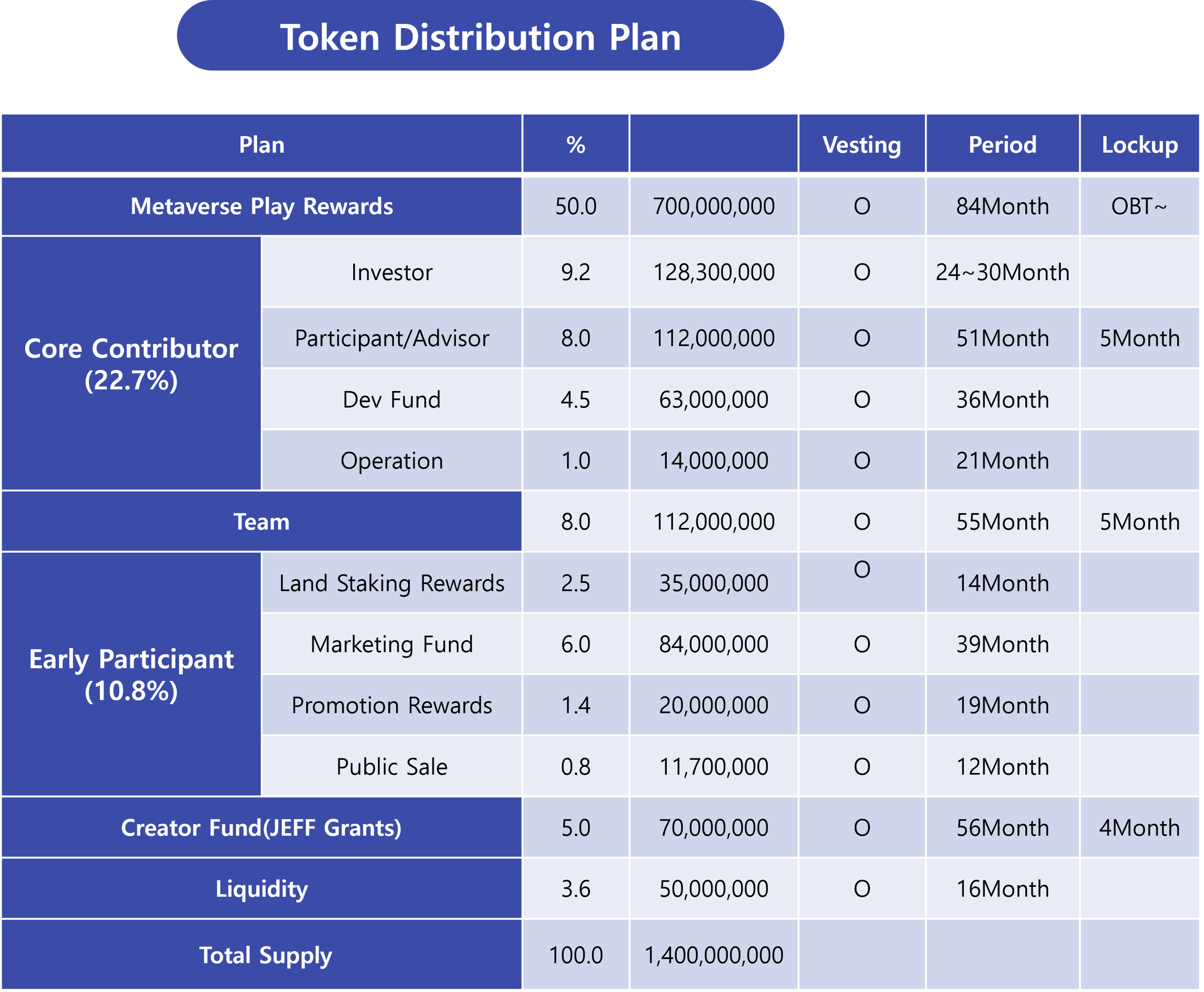 $JEFF ํ ํฐ์ Smart Contract๋ก ๊ด๋ฆฌ๋๋ฉฐ, ๊ฐ ๋ถ๋ฐฐ ๊ณํ ๋ณ๋ก ์ค์ ๋ Vesting ๊ณํ์ ๋ฐ๋ผ ์ ํต๋ฉ๋๋ค.
