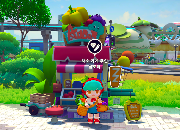 1. 채소 가게 주인 클로이를 찾아갑니다. 화면 우측 상단 월드맵 좌측의 위치 표시를 눌러 클로이를 클릭하세요!